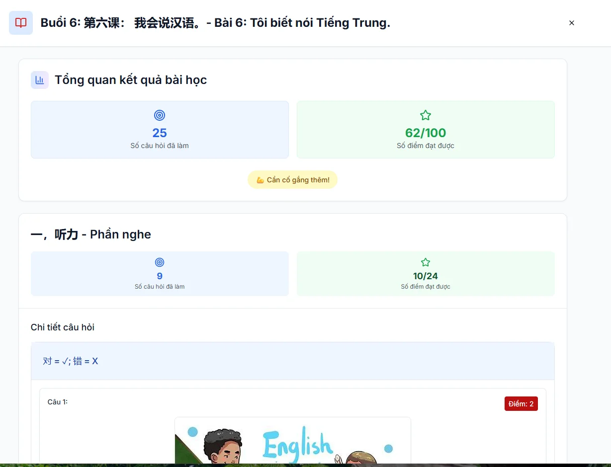 - Giáo viên 100% đạt HSK6 & HSKK cao cấp, nhiều năm kinh nghiệm dạy online, sửa bài chi tiết, giúp học viên tiến bộ nhanh và vững chắc.