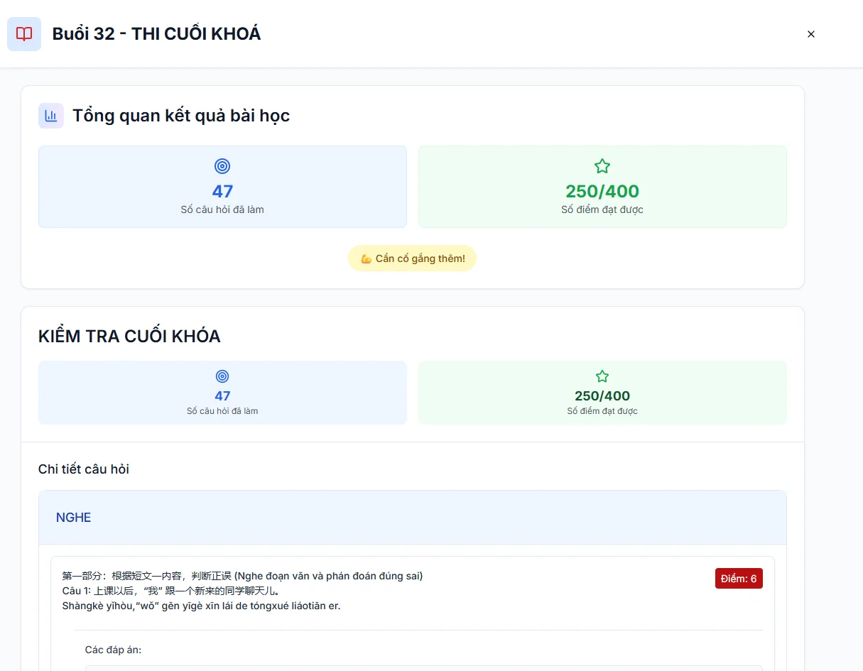 🔴 Theo dõi Real-time: Kiểm soát kết quả học tập và mức độ hoàn thành mục tiêu giao tiếp.
